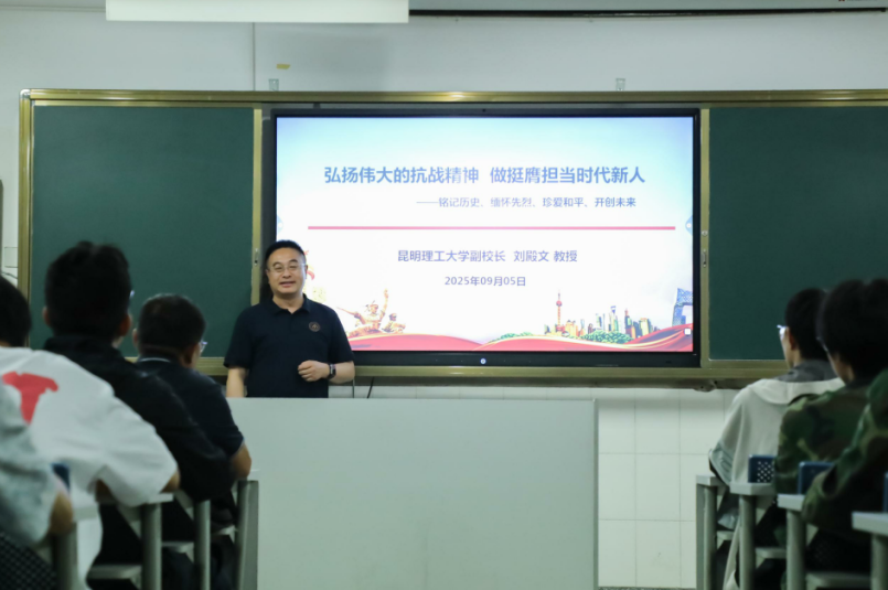 9月5日,校党委常委、副校长刘殿文教授作为矿物加工工程2024级、2025级拔尖创新班班主任,在莲华校区矿业大楼334教室以“弘扬伟大的抗战精神、做挺膺担当时代新人”为题,为两个班的本科生及该专业2025级研究生代表等师生讲授思政课。本次思政课由黄金城