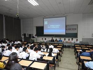 2015-2016学年下学期学生会第一次全体大会如期举行。多媒体100教室里聚满了一张张充满激情的面孔,出席本次大会的老师有团委书记王琳老师、院团委副书记王磊老师、2015级国资院辅导员代强老师以及学生会主席团,全体学生会干部参与了此次会议。