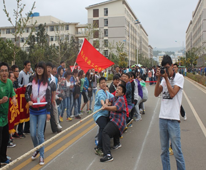 拔河比赛在图书馆北门前道路举行,本次比赛由黄金城