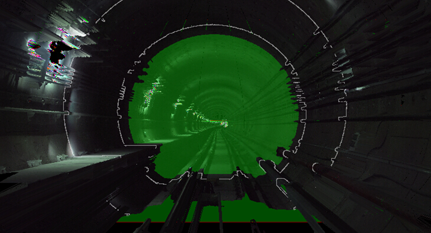 3)地铁隧道渲染建模及分析系统。开发了隧道点云建模及剖面自动生成等分析算法。