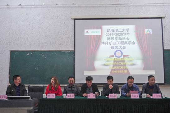 德殷集团工会主席马磊成和云南博泽矿山工程有限责任公司总经理董金松分别致辞。马磊成介绍了德殷集团作为云南省民营企业对地方教育事业的社会责任和对昆工学子的关爱相助之情。董金松先生则在在会上解释了设立“博泽矿业工程奖学金”的初心和愿景,他表示作为校友企业,博泽矿业一直不忘母校培养之恩,希望以老校友的身份为母校尽绵薄之力,鼓励学弟学妹们专心为学,刻苦钻研,将来一起回报社会、回报母校!