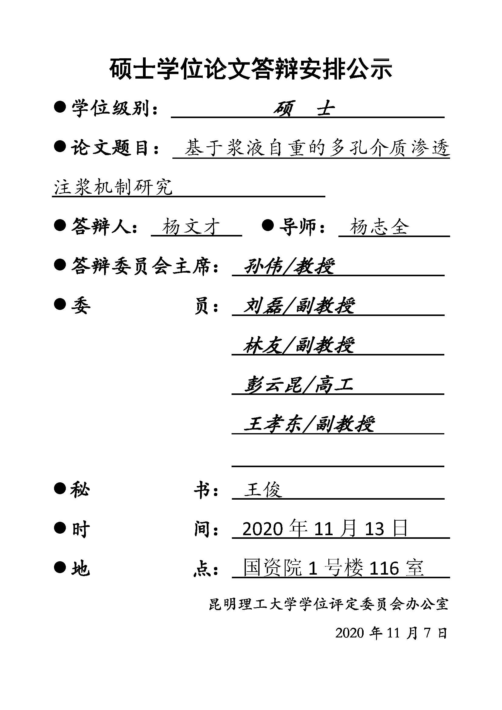 杨文才学位论文答辩安排公示
