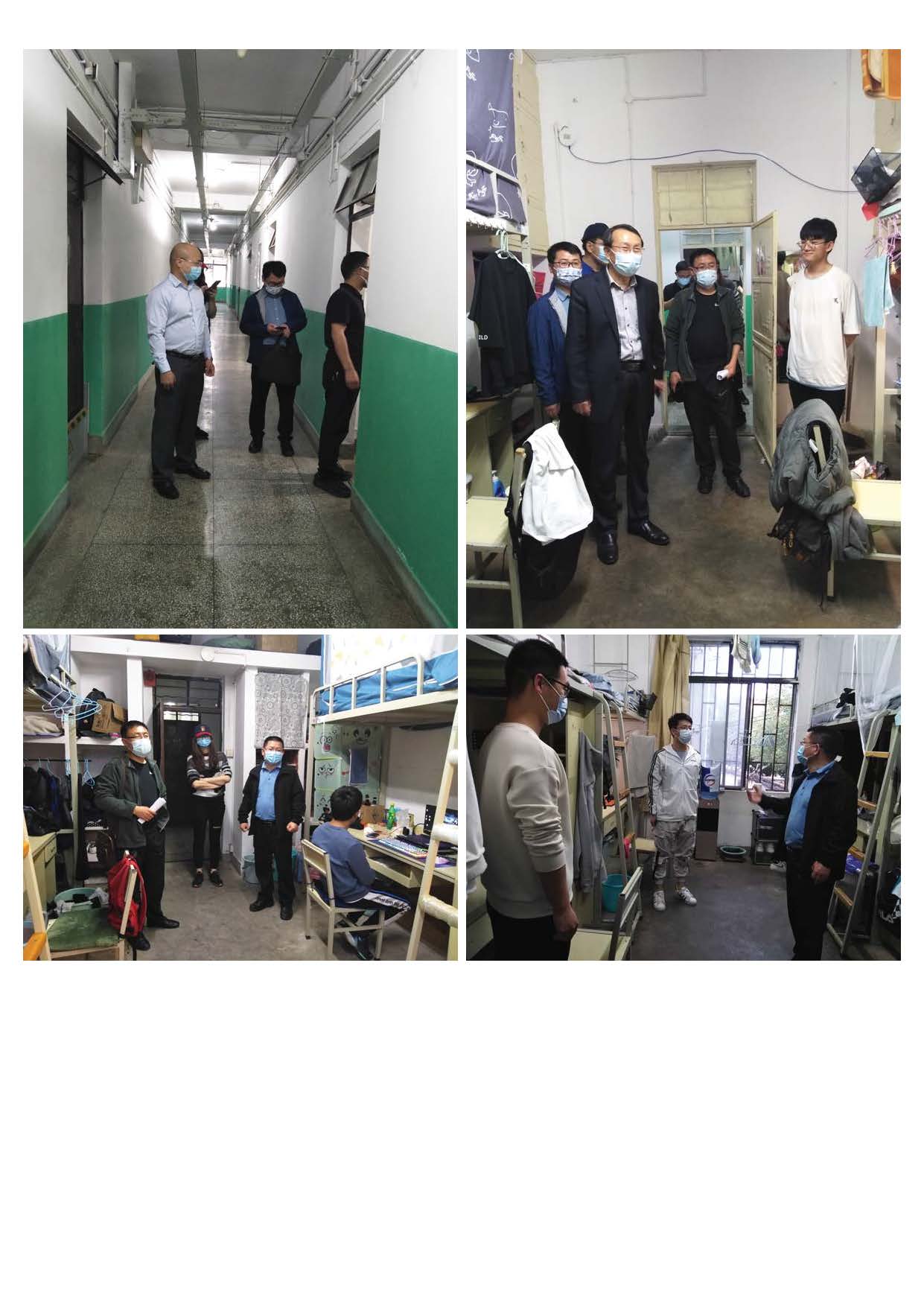 各位领导老师走访时与同学们亲切交谈,向同学们详细了解“防疫口罩够不够?”“最近学习怎么样?”“学校的疫情防控政策了不了解,大家有什么看法?”等等。叮嘱同学们一定要遵守校规校纪,有困难向学院反映。同时,也对同学们的宿舍卫生、宿舍用电安全进行了检查。