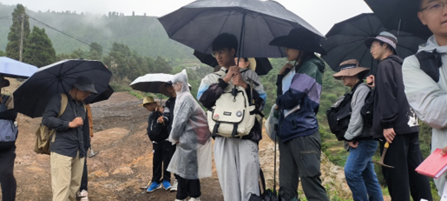 实习区风口村曾经为磷矿开采地,磷矿的开采对当地以及周边水域(滇池、阳宗海和抚仙湖)产生了极大的污染。现在的风口村已退采还耕,曾经的磷矿开采地已被农作物耕地取代。实习当日细雨连绵,但依旧浇不灭实习团队师生们对当地生态修复情况调查的热情。因为,金山银山不如绿水青山,保护好了生态,才能进行可持续的发展(图3)。