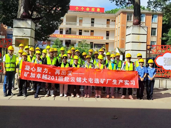 在完成实习任务后,同学们一起在云锡选矿厂进行合影留念。