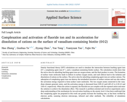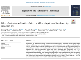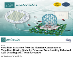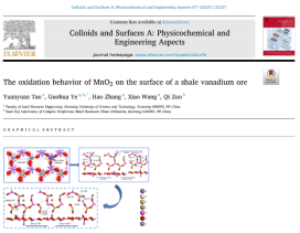 国土资源工程学院叶国华研究团队在活化酸浸提钒研究方面取得重要进展,相关工作以“Complexation and activation of fluoride ion and its acceleration for dissolution of cations on the surface of vanadium-containing biotite (002)”、“Effect of activator on kinetics of direct acid leaching of vanadium from clay vanadium ore”、“Vanadium Extraction from the Flotation Concentrate of Vanadium-Bearing Shale by Process of Non-Roasting Enhanced Acid Leaching and Thermodynamics”、“The oxidation behavior of MnO2 on the surface of a shale vanadium ore”,分别在Applied Surface Science、Separation and Purification Technology、Molecules和Colloids and Surfaces A: Physicochemical and Engineering Aspects上发表。