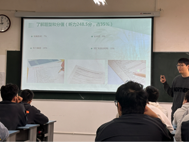 在此次班会上,班主任都喜东老师从英语四级考试的备考策略讲起,系统介绍了四级考试中的具体题型以及题目组成,详细分析了每种题型的分数占比以及难易程度,给同学们分享了自己的应试技巧和英语学习方法,其中,都喜东老师着重强调了备考时应制定详细的复习计划并一丝不苟地去执行才能顺利通过考试,这些宝贵的经验令同学们在应对步入大学学习的首次测验有了更多的底气并明确了在大学学习期间的目标以及收获了宝贵的学习方法,令人受益匪浅。
