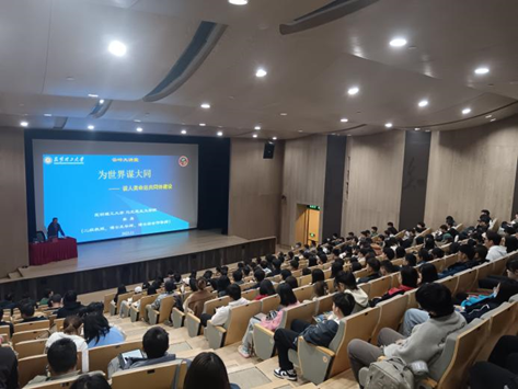 讲座以“人类命运共同体建设”为主题,分别从“构建人类命运共同体的由来”、“构建人类命运共同体的理论溯源”、“彰显新时代大国外交伟力,勇于担当大国责任”、“共商共筑人类命运共同体”等部分具体论述了中国提出的人类命运共同体建设对世界社会发展的重要意义。讲座后,师生们表示讲座内容丰富,意义深刻,更加深信人类命运共同体建设将更好地推进中国与世界的共同发展进步。