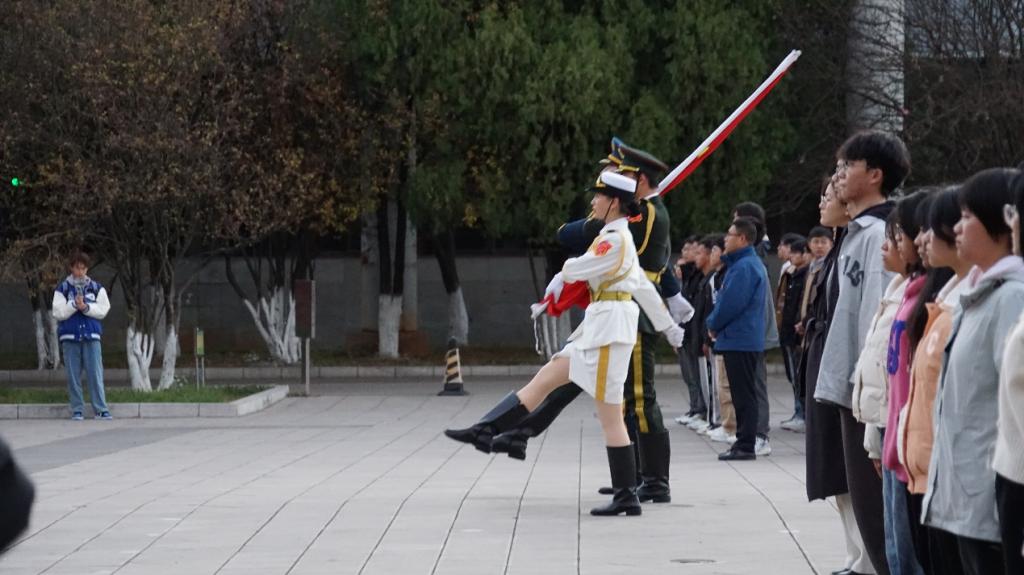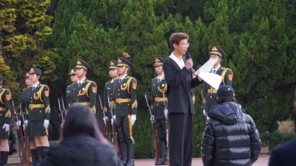 本次升旗仪式在莲华校区博信广场进行,黄金城