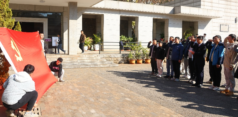 在支部书记吴顺川同志领誓下,支部全体党员高举右手进行宣誓,一起重温入党誓词,牢记誓言、恪守承诺。随后,教师党员代表、学生党员代表先后发言分享参观心得体会,他们被西南联大学生爱国奉献、艰苦奋斗、敬业勤学的精神所打动,表达了对革命时期先辈的崇敬之情。最后,支部书记吴顺川同志作了总结讲话,对青年党员提出了要求,并寄予殷切希望,要追寻西南联大精神,艰苦奋斗搞学术研究。大家表示,今后要牢记初心使命,赓续红色血脉,把先烈们的爱国主义和艰苦奋斗的精神融入我们学习和工作中,为实现中华民族伟大复兴贡献智慧和力量。
