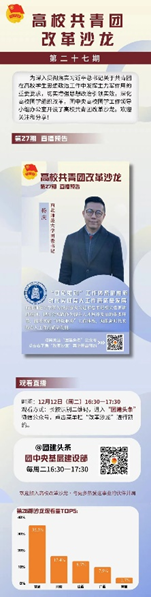 为深入贯彻落实习近平总书记关于共青团在高校学生思想政治工作中发挥主力军作用的重要要求,切实增强思想政治引领实效,深化高校团学组织建设,团中央高校团学工作领导小组办公室开设了共青团基层建设沙龙(高校篇)。