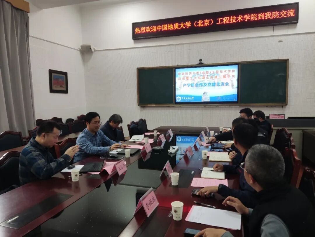 开展产学研合作及党建工作交流座谈会。学院党委副书记李雨健、地大(北京)工程技术学院工程地质系支部书记陈剑、地质工程系支部书记王志乔、地下工程系支部书记刘红岩、工程地质系副主任臧明东、学院地科系系主任杨光树、地科系第二党支部书记李保珠、“深地资源开发与灾害防控科技创新团队”党支部支委代风、地科系系副主任管申进、徐晓飞和童大贵参加了座谈。