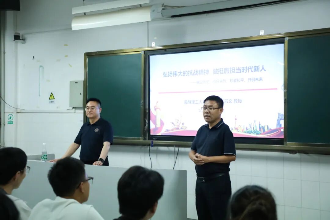 9月5日,校党委常委、副校长刘殿文教授作为矿物加工工程2024级、2025级拔尖创新班班主任,在莲华校区矿业大楼334教室以“弘扬伟大的抗战精神、做挺膺担当时代新人”为题,为两个班的本科生及该专业2025级研究生代表等师生讲授思政课。