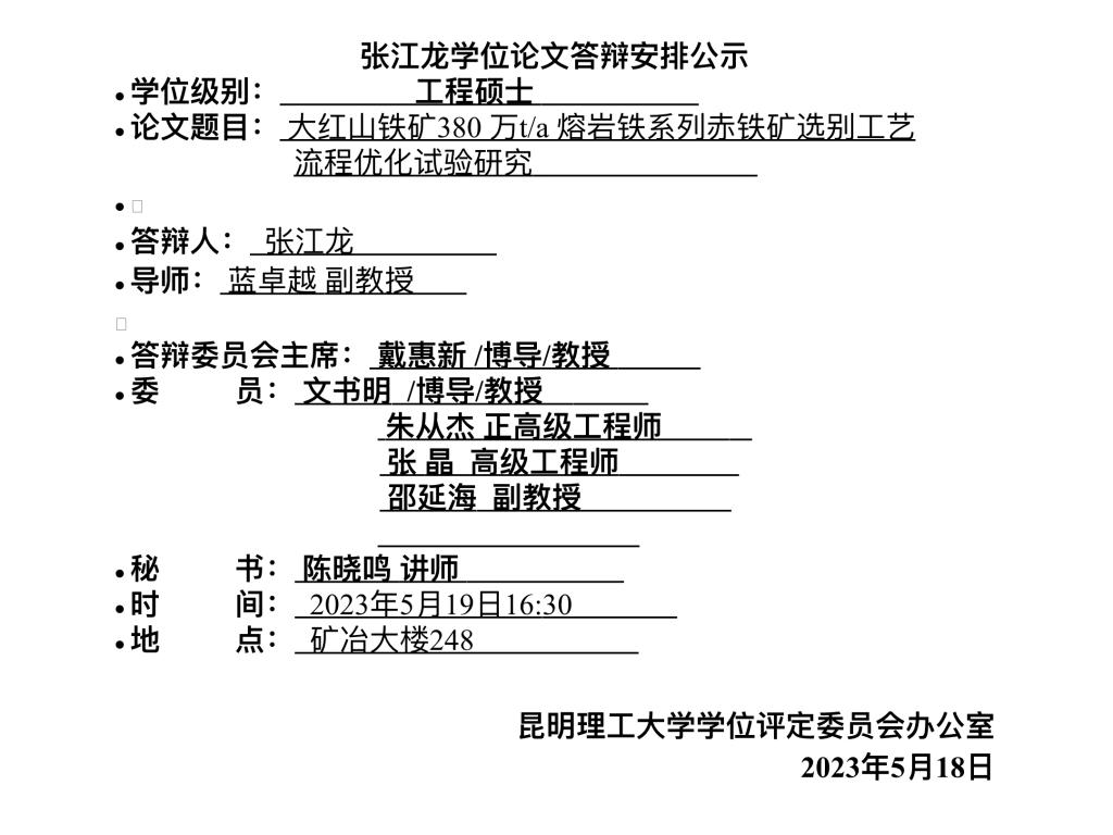 2023年5月黄金城 矿物加工工程系硕士答辩...